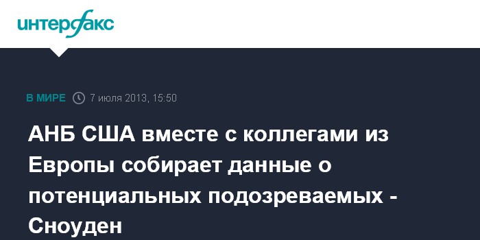 АНБ США вместе с коллегами из Европы собирает данные о потенциальных подозреваемых - Сноуден