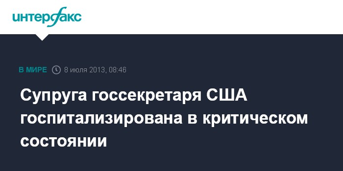 Супруга госсекретаря США госпитализирована в критическом состоянии