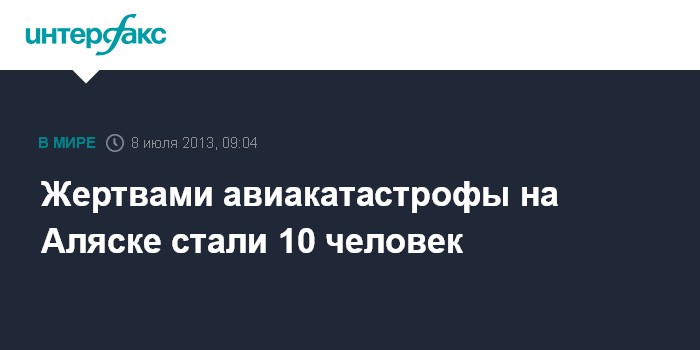 Вашингтон. 8 июля. INTERFAX.RU - Все 10 человек, которые находились на борту самолета-такси, потерпевшего аварию в аэропорту Анкориджа - крупнейшего города американского штата Аляска - погибли, сообщил представитель управления транспортной безопасности США.