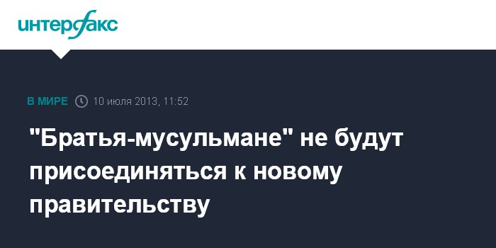 Париж. 10 июня. INTERFAX.RU - Движение "Братья-мусульмане" не собирается присоединяться к новому кабинету министров страны во главе с Хаземом Баблави, завил в среду представитель движения Тарик аль-Мурси.