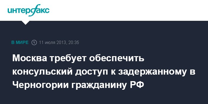 Москва требует обеспечить консульский доступ к задержанному в Черногории гражданину РФ