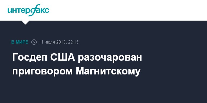 Вашингтон. 11 июля. INTERFAX.RU - В Вашингтоне называют беспрецедентным приговор в отношении покойного Сергея Магнитского, сообщила в четверг на брифинге представитель государственного департамента США Джен Псаки.