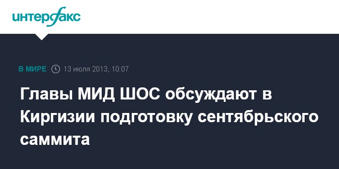 Чолпон-Ата (Киргизия). 13 июля. INTERFAX.RU - Министры иностранных дел Шанхайской организации сотрудничества обсуждают вопросы подготовки к предстоящему в сентябре в Бишкеке саммиту глав государств организации.