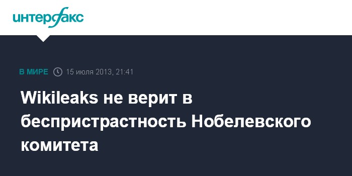 Wikileaks не верит в беспристрастность Нобелевского комитета