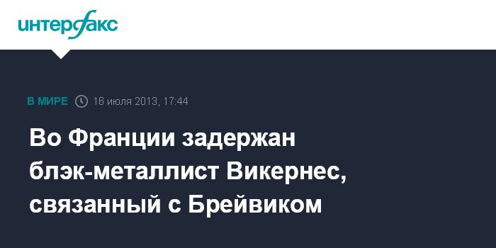 Париж. 16 июля. INTERFAX.RU - Французская полиция задержала на юго-западе страны норвежского музыканта и неонациста Варга Викернеса, контактировавшего с террористом Андерсом Брейвиком, пишет французская газета Le Monde.