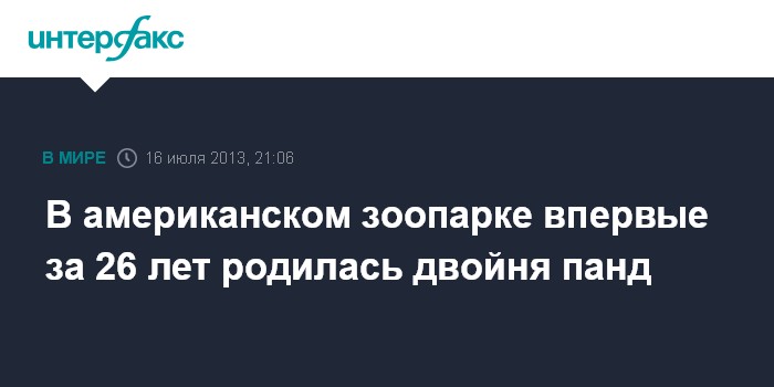 Москва. 16 июля. INTERFAX.RU - В зоопарке города Атланта, штат Джорджия, у одной из панд родилась двойня. Как сообщает CNN, в последний раз такое событие произошло в США 26 лет назад.