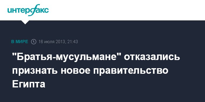 Каир. 16 июля. INTERFAX.RU - Члены "Братьев-мусульман" не считают законным новый кабинет министров Египта, сообщил во вторник представитель движения Джихад аль-Хаддад.