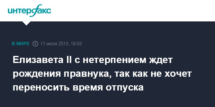 Лондон. 17 июля. INTERFAX.RU - Британская королева Елизавета II надеется, что ее правнук родится поскорее.