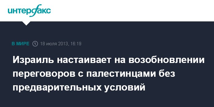 Израиль настаивает на возобновлении переговоров с палестинцами без предварительных условий
