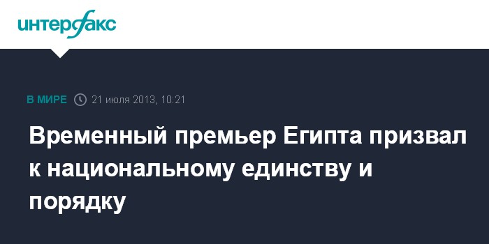 Каир. 21 июля. INTERFAX.RU - Временный премьер-министр Египта Хамез Баблави призвал покончить с национальной разобщенностью и восстановить порядок в стране. "Египет более важен для всего мира, чем мы думаем, а также нуждается в большем внимании с нашей стороны. Наступающий период требует от нас больше гармонии и примирения", - сказал он в интервью национальному телевидению.