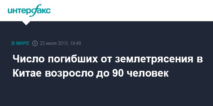 Пекин. 22 июля. INTERFAX.RU - Число жертв землетрясения в северо-западной китайской провинции Ганьсу выросло до 89 человек, еще пятеро числятся пропавшими без вести, сообщили журналистам провинциальные власти.