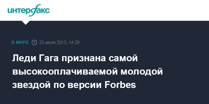 Вашингтон. 23 июля. INTERFAX.RU - В топ-рейтинг самых высокооплачиваемых знаменитостей моложе тридцати лет по версии журнала Forbs попали Леди Гага, Джастин Бибер и Тейлор Свифт.
