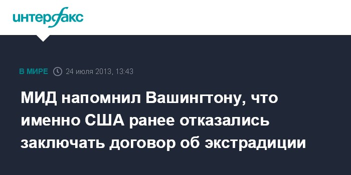 МИД напомнил Вашингтону, что именно США ранее отказались заключать договор об экстрадиции
