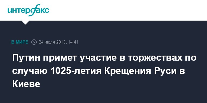 Путин примет участие в торжествах по случаю 1025-летия Крещения Руси в Киеве