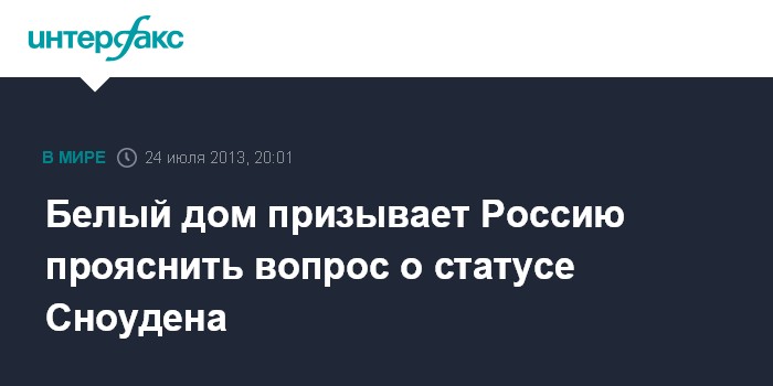 Вашингтон. 24 июля. INTERFAX.RU - США добиваются ясности от России по поводу статуса экс-сотрудника ЦРУ Эдварда Сноудена, заявил в среду представитель Белого дома Джей Карни.