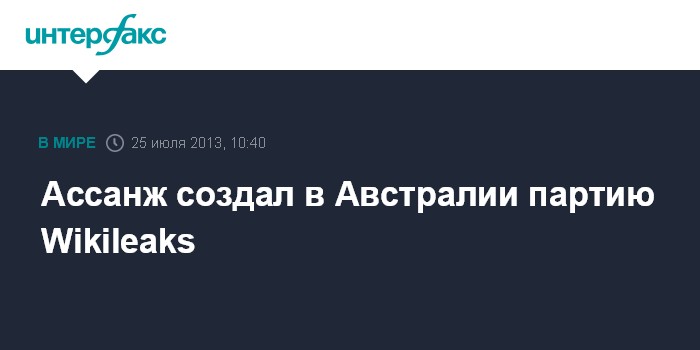 Сидней. 25 июля. INTERFAX.RU - Основатель сайте Wikileaks Джулиан Ассандж официально объявил в четверг о создании партии Wikileaks, чтобы принять участие в сентябрьских выборах в парламент Австралии.