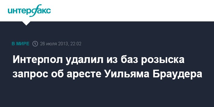 "Вся информация, относящаяся к запросу об аресте господина Браудера, уже удалена из баз данных Интерпола и все страны-члены Интерпола проинформированы соответствующим образом", - говорится в заявлении, размещенном вечером в пятницу на официальном сайте Генсекретариата Интерпола.