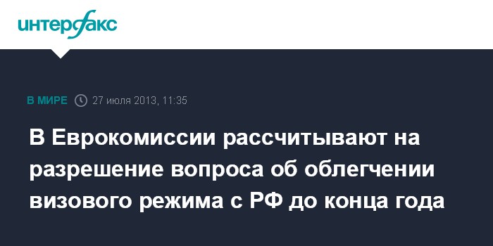Санкт-Петербург. 27 июля. INTERFAX.RU - Генеральный директор по внутренним делам Еврокомиссии Стефано Мансервизи рассчитывает, что вопрос об облегчении визового режима между Россией и ЕС будет разрешен уже в этом году. "Я рассчитываю, что до конца года этот вопрос будет разрешен. Вопрос идет об облегчении визового режима, а не о его либерализации", - сообщил С.Мансервизи журналистам в субботу по итогам встречи сопредседателей Диалога Россия-ЕС в Петербурге.