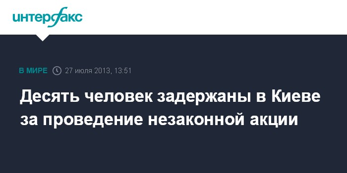Киев. 27 июля. INTERFAX.RU - Милиция задержала 10 человек на площади Независимости в Киеве за незаконное проведение акции.