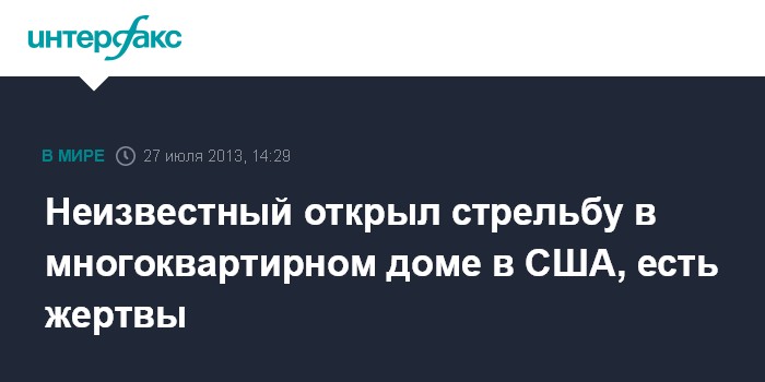 Вашингтон. 27 июля. INTERFAX.RU - Шесть человек погибли в ночь на субботу в американском штате Флорида, когда вооруженный мужчина сначала учинил стрельбу, в многоквартирном доме, а затем взял в заложники двоих жильцов, сообщает американский телеканал Fox News.