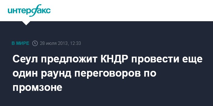 Сеул предложит КНДР провести еще один раунд переговоров по промзоне
