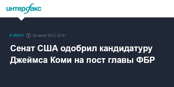 Лондон. 30 июля. ИНТЕРФАКС - Сенат США одобрил кандидатуру Джеймса Коми на пост директора Федерального бюро расследований (ФБР), после того как консерватор Рон Пол перестал блокировать голосование, сообщает британская телерадиовещательная корпорация Би-би-си.