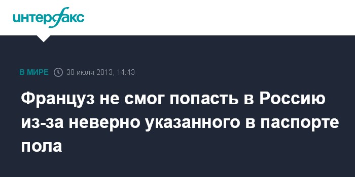Француз не смог попасть в Россию из-за неверно указанного в паспорте пола