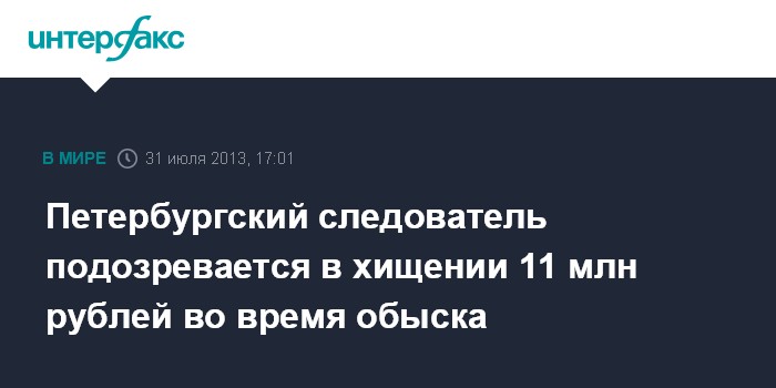Петербургский следователь подозревается в хищении 11 млн рублей во время обыска
