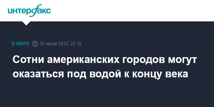 Вашингтон. 31 июля. INTERFAX.RU - Более 1,4 тыс. городов в США рискуют уйти под воду к 2100 году из-за роста уровня Мирового океана, сообщает в среду американский научный журнал PNAS.