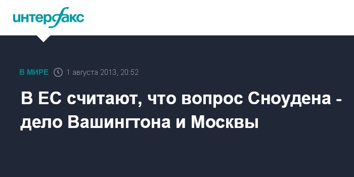 В ЕС считают, что вопрос Сноудена - дело Вашингтона и Москвы