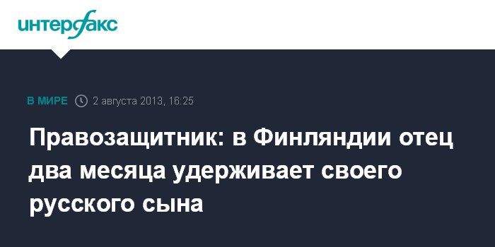 Правозащитник: в Финляндии отец два месяца удерживает своего русского сына