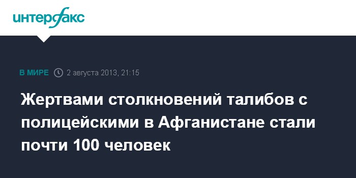 Кабул. 2 августа. INTERFAX.RU - Около ста человек были убиты в результате боев между боевиками движения "Талибан" и сотрудниками полиции в провинции Нангархар на востоке Афганистана, заявили в пятницу местные власти.