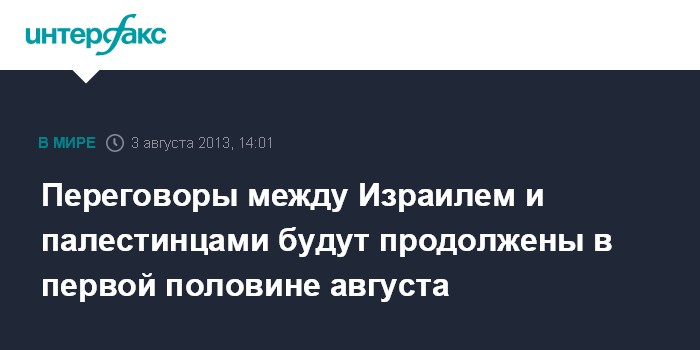 Переговоры между Израилем и палестинцами будут продолжены в первой половине августа