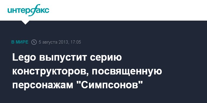 Копенгаген. 5 августа. INTERFAX.RU – Датская компания по производству игрушек Lego в понедельник подтвердила, что в 2014 г. выпустит специальную серию, посвященную персонажам мультсериала "Симпсоны", сообщает Associated Press.