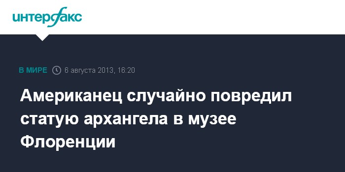 "55-летний житель американского штата Миссури, находящийся во Флоренции с семьей в туристической поездке, дотронулся до статуи архангела, в результате чего она была повреждена", - цитирует издание одного из смотрителей музея.