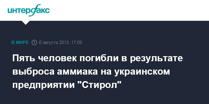 Пять человек погибли в результате выброса аммиака на украинском предприятии "Стирол"