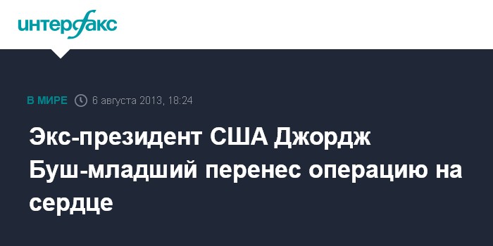 Вашингтон. 6 августа. ИНТЕРФАКС - Бывшему президенту США Джорджу Бушу была успешно проведена операция на сердце, сообщает во вторник американский телеканал NBC со ссылкой на представителей бывшего главы Белого дома.