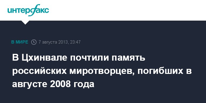 В расположение российских миротворцев, первыми принявших удар грузинского агрессора в августе 2008 года, в верхнем городе на окраине Цхинвала руководство и гости республики возложили венки. Затем в "Музее сожженных душ" у въезда на Зарскую объездную дорогу состоялась траурная акция по погибшим мирным жителям.