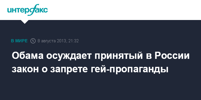 Отвечая на вопрос журналиста, о том осуждает ли Обама конкретный закон, принятый в России, представитель Белого дома сказал: "Совершенно точно".