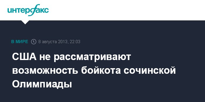 Вашингтон. 8 августа. INTERFAX.RU - В Вашингтоне не обсуждают возможности бойкота Олимпиады в Сочи, сообщил в четверг на брифинге представитель Белого дома Джей Карни. "Таких разговоров у нас не идет", - ответил он на соответствующий вопрос журналиста.