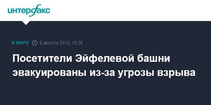Париж. 9 августа. INERFAX.RU - С Эйфелевой башни в пятницу проведена эвакуация посетителей, сообщает полиция Парижа.
