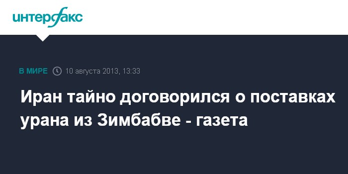 Лондон. 10 августа. INTERFAX.RU - Руководители Зимбабве заключили тайную сделку по поставке урана в Иран в обход международных санкций, пишет в субботу британская газета The Times со ссылкой на зимбабвийского замминистра шахт Гифта Чиманикире. "Я видел меморандум о взаимопонимании, согласно которому планировалось поставлять иранцам уран", - пояснил этот чиновник, представляющий оппозицию. По его словам, документ был подписан в прошлом году, причем в Зимбабве о нем известно лишь крайне ограниченному числу руководителей.
