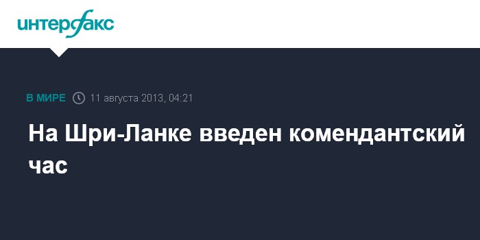 Лондон. 11 августа. ИНТЕРФАКС - Власти Шри-Ланки ввели комендантский час в городе Грандпасс в окрестностях Коломбо. Эта мера стала реакцией на столкновения между буддистами и мусульманами, вспыхнувшими после атаки группы буддистов на мечеть.