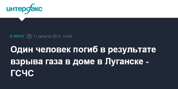 Киев. 11 августа. INTERFAX.RU - В результате взрыва газа в жилом многоэтажном доме в Луганске, по предварительным данным, погиб один человек и шестеро травмированы, сообщили агентству "Интерфакс-Украина" в пресс-службе Госслужбы по чрезвычайным ситуациям.
