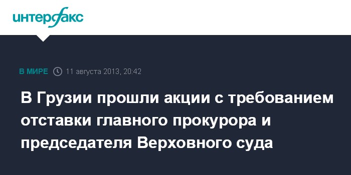 Тбилиси. 11 августа. ИНТЕРФАКС - Политическое движение "Альянс патриотов Грузии", а также "Движение сопротивления" и медиа-союз "Объектив" в воскресенье провели в Тбилиси у здания Главной прокуратуры Грузии акцию протеста с требованием отставки главного прокурора Арчила Кбилашвили и председателя Верховного суда Грузии Константина Кублашвили.