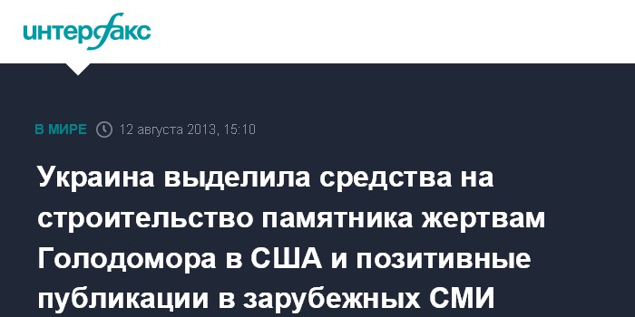 Украина выделила средства на строительство памятника жертвам Голодомора в США и позитивные публикации в зарубежных СМИ