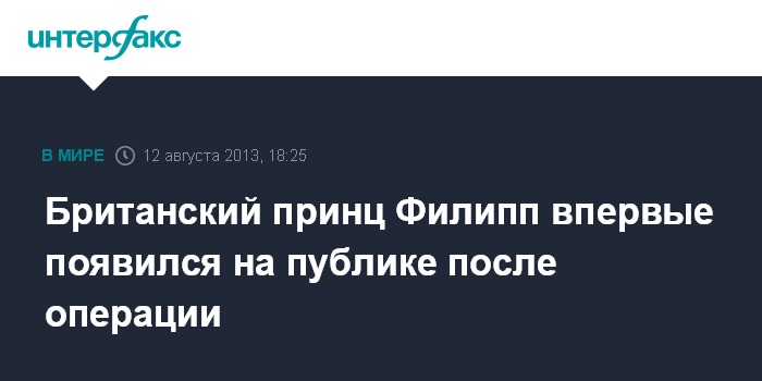 Лондон. 12 августа. INTERFAX.RU - Супруг британской королевы принц Эдинбургский Филипп впервые принял участие в официальном мероприятии после диагностической операции на брюшной полости, сообщает в понедельник телерадиокорпорация BBC.