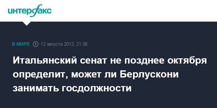 Итальянский сенат не позднее октября определит, может ли Берлускони занимать госдолжности