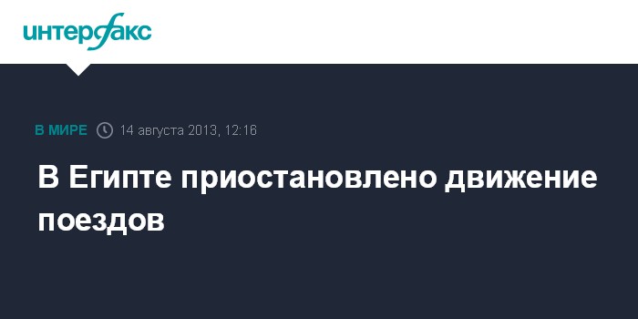 Дубай. 14 августа. INTERFAX.RU - МВД Египта приняло решение приостановить движение поездов по всей стране, передают в среду межарабские телеканалы "Аль-Арабийя" и "Аль-Джазира".