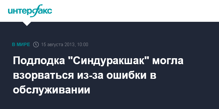 Москва. 15 августа. INTERFAX.RU - Инцидент с подводной лодкой "Синдуракшак" ВМС Индии мог быть вызван одной из четырех причин, либо комплексом таких причин, сообщил в четверг "Интерфаксу-АВН" источник в российской судостроительной отрасли.
